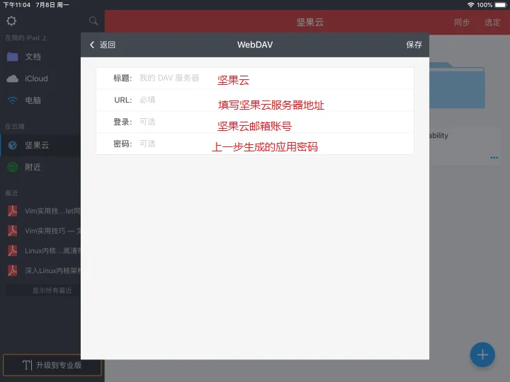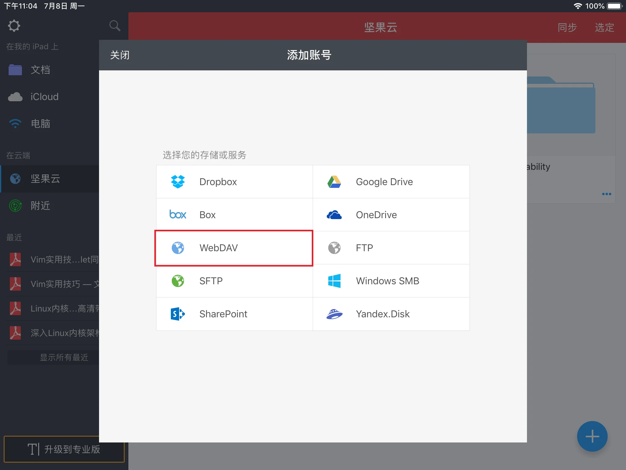 打开IPAD上的PDF EXPERT,添加账号后,设置如下:
