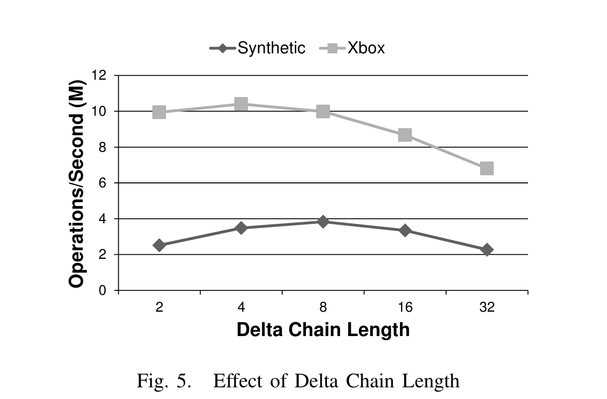 update类操作在所有负载下都很低,split和consolidate操作略高,但是作者认为可以接受,在合成负载中,失败率最高,因为合成负载的key value都很小,update操作很快完成。