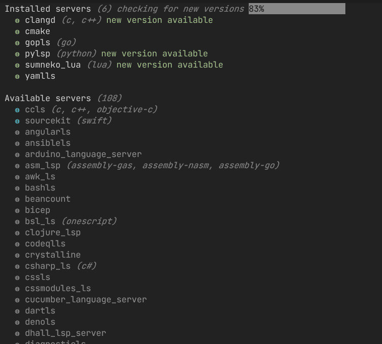 local status_ok, lsp_installer = pcall(require, "nvim-lsp-installer") ifnot status_ok then vim.notify("nvim-lspconfig not found!") return end