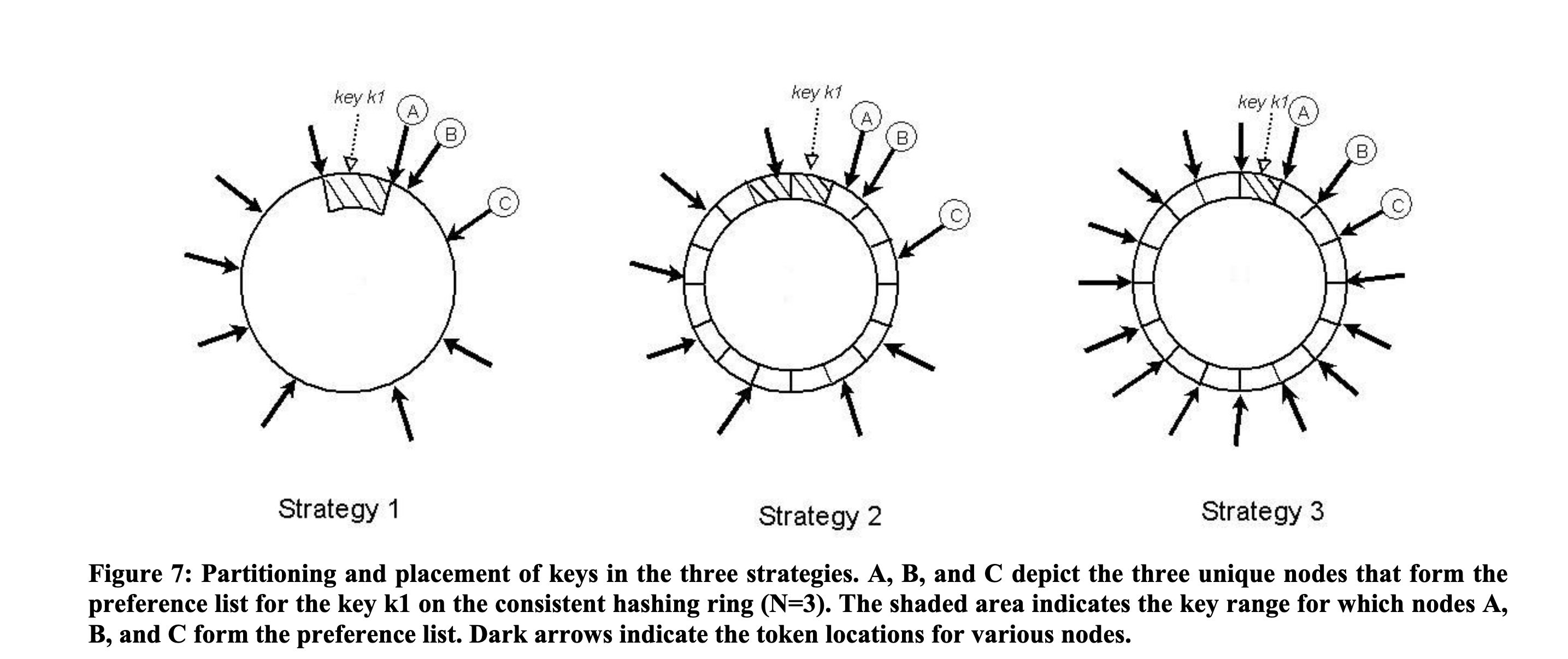 T个随机令牌(Token),令牌在一致性哈希环上的位置随机分布。 - 哈希环被划分为多个随机大小的区间,每个区间由顺时针方向的下一个节点负责。