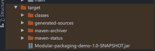 模块化程序打包就略微复杂一些了,首先明确一点,idea中,有maven在,所有的编译输出不在out目录下,而在target目录下:
