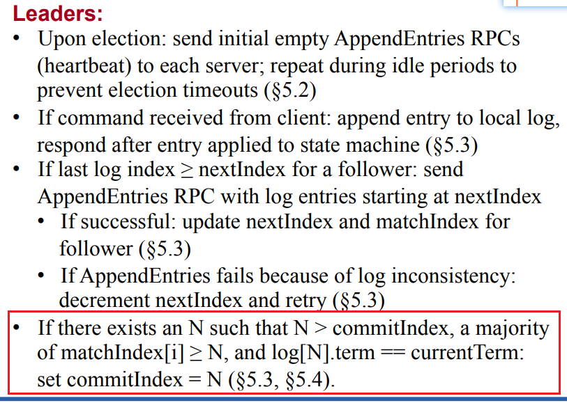 // // restore previously persisted state. // func(rf *Raft) readPersist(data []byte) { if data == nil || len(data) < 1 { // bootstrap without any state? return } DPrintf("[%d] read state from storage\n", rf.me) // Your code here (2C). // Example: r := bytes.NewBuffer(data) d := labgob.NewDecoder(r) var currentTerm int var voteFor int var log []LogEntry if d.Decode(¤tTerm) != nil || d.Decode(&voteFor) != nil || d.Decode(&log) != nil { DPrintf("[%d] [Error]: read state failed", rf.me) } else { // NOTE: need latch or not? it depends on the caller rf.currentTerm = currentTerm rf.votedFor = voteFor rf.log = log DPrintf("[%d] read state from storage, %+v\n", rf.me, rf) } }
