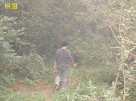 可以看到,其实去雾效果还不错,但是意到第一幅图的原图两个字的周围明显有一块不协调的地方,而第二图顶部水平方向似乎有一块没有进行去雾处理,这些都是由于我们的透射率图过于粗糙了。