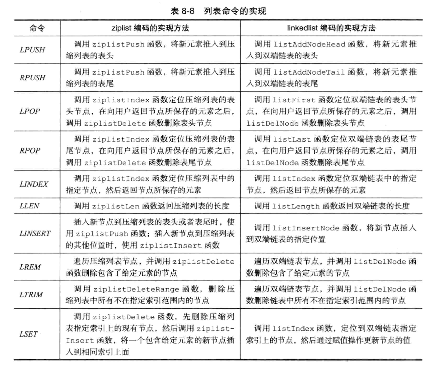 列表对象(type: REDIS_LIST), 底层实现有 ziplist 和 linkedlist 。
