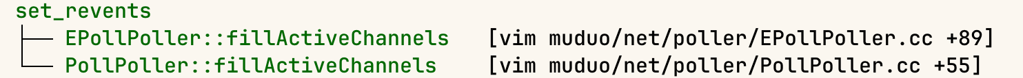 1 2 3 4 5 6 7 8 9 10 11 12 13 14 15 void EventLoop::loop () { ... while (!quit_) { activeChannels_.clear (); pollReturnTime_ = poller_->poll (kPollTimeMs, &activeChannels_); ... doPendingFunctors (); } LOG_TRACE << "EventLoop " << this << " stop looping" ; looping_ = false ; }